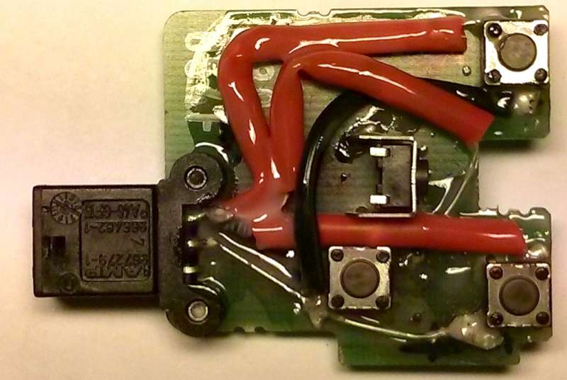 Tady už zapájené odpory a zalité lakem. Původní cestičky na plosnáku sem proškrábl tak, abych oddělil jednotlivé micro spínače od původních odporů a mezi sebou.