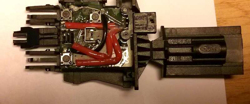 Nejprve je potřeba oddělat ovladač od "sloupku" s volantem, stačí malý šroubovák a zezadu na ovladači zmáčknout, ovladač se uvolní. Pak už jen odpojit konektor a máme tohle: