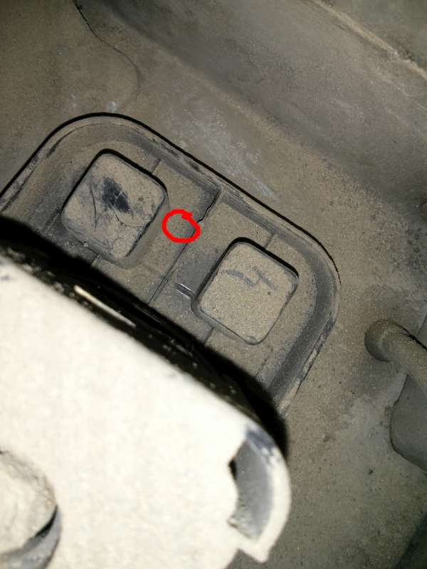 V místě červeného kolečka sem vyvrtal díru odpovídající průměru kabelu od akumulátoru.